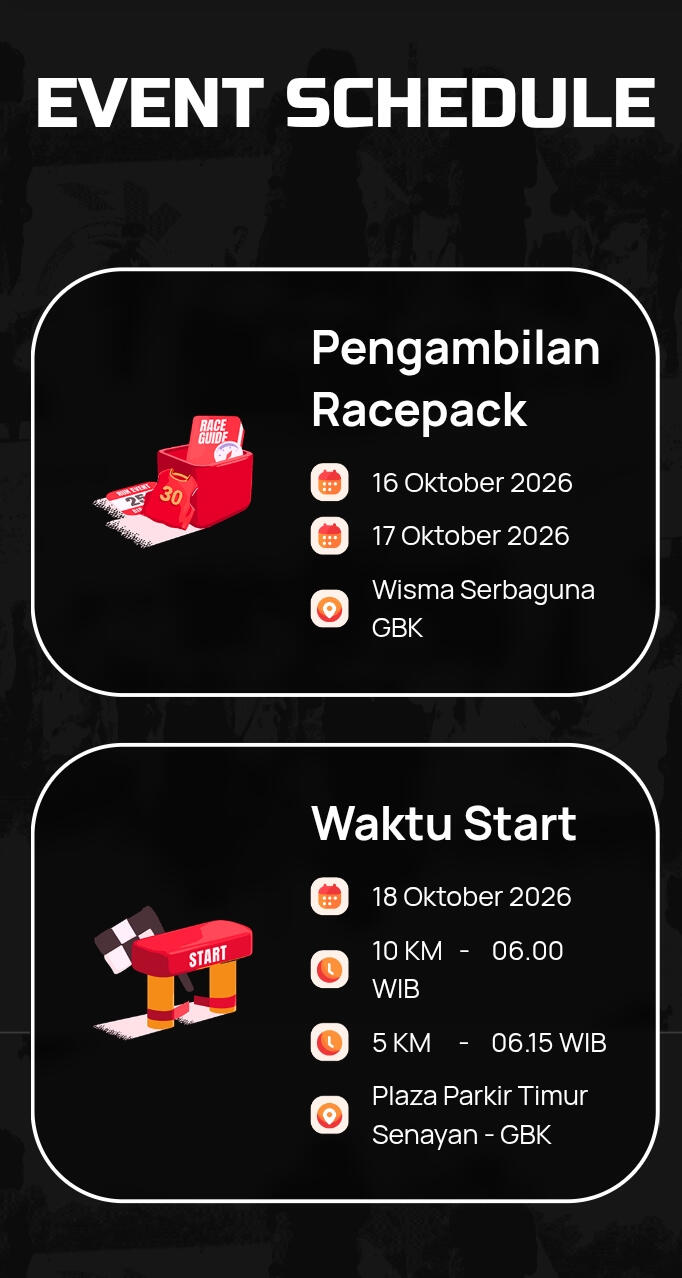 Alfamart Run kembali hadir di tahun 2026 sebagai perayaan lima tahun perjalanan yang konsisten, kuat, dan penuh makna. Sejak pertama kali digelar pada 2022, Alfamart Run terus menghadirkan peningkatan di setiap penyelenggaraan, menjadikannya bukan sekadar ajang lari, melainkan sebuah movement yang memberi kesan para pesertanya.Setiap langkah dan setiap kilometer yang ditempuh merupakan esensi Alfamart Run. Dengan menggabungkan olahraga dan hiburan, Alfamart Run menghadirkan pengalaman yang berkesan, bukan hanya untuk dikenang, tetapi juga untuk dirindukan dan diulang setiap tahunnya.Salah satu signature Alfamart Run adalah goodie bag ikonik yang selalu dinantikan para peserta. Konsistensi ini bahkan mendapat tiga kali pengakuan dari Museum Rekor Dunia Indonesia (MURI) pada 2023, 2024 dan 2025 sebagai lomba lari dengan goodie bag berisi produk terbanyak. Inovasinya terus berkembang setiap tahun, dimulai dari goodie bag edisi 2022, berlanjut ke goodie bag karung di 2023, goodie bag troli di 2024, hingga goodie bag tas koper seberat 40 kilogram di 2025. Konsistensi inovasi ini menjadikan Alfamart Run menjadi perhatian tidak hanya bagi pelari, tetapi juga masyarakat luas yang ingin merasakan keseruannya.Memasuki edisi kelima, Alfamart Run terus menghadirkan pengalaman terbaik dan tak terlupakan. Antusiasme jutaan orang berebut tiket di edisi-edisi sebelumnya membuktikan bahwa Alfamart Run telah menjadi salah satu event lari paling dinanti di Indonesia saat ini. Kini, giliran kamu untuk menjadi bagian dari perjalanan besar yang telah dibangun selama lima tahun terakhir.Lebih dari itu, Alfamart Run juga berkomitmen untuk tumbuh bersama komunitas. Pelibatan pelaku UMKM menjadi bagian penting dari ekosistem event ini, mulai dari pemberdayaan pengrajin lokal dalam produksi goodie bag edisi sebelumnya, hingga kehadiran mitra tenant UMKM Alfamart yang mendukung kebutuhan energi para peserta